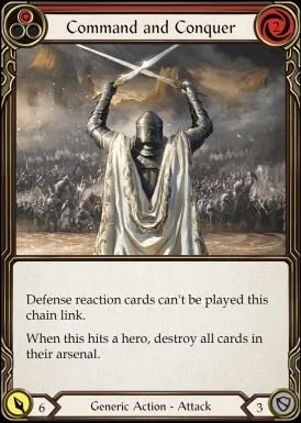 Command and Conquer: One of the best attack actions in the game. We get arsenal destruction and a way around defense reactions. This is one of the best Pummel targets also.