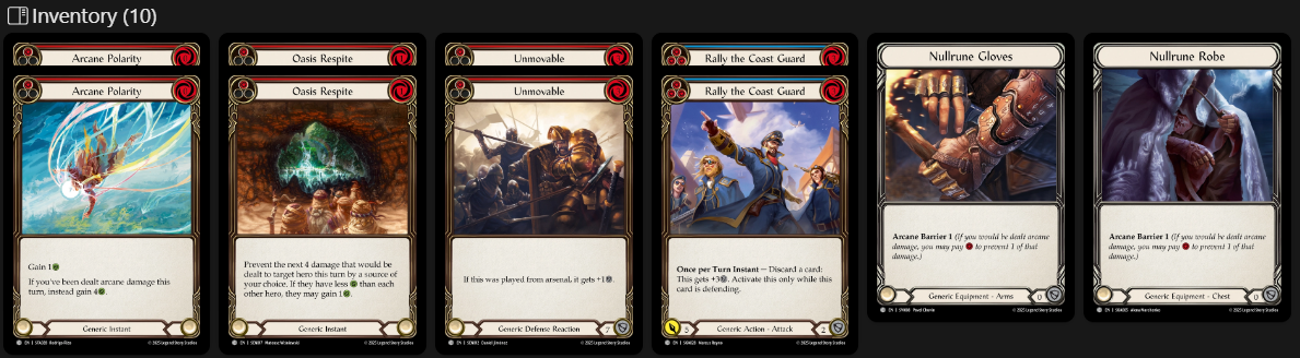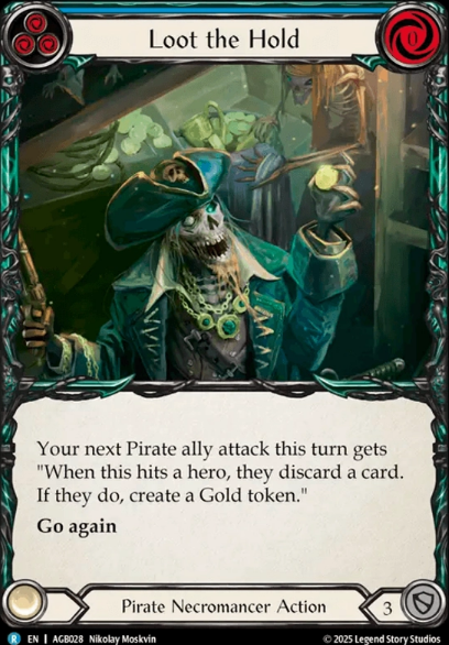 Loot the Arsenal is definitely a good card for disruption, but it feels like in Sage that its hard to actually pull off with our allies and thats why I cut this down to 1. Its still here because should the opportunity arise to get full value out of it, you should of course take it, but most importantly its a 0 cost blue go again thats a 3 block. Next up is a card that follows the same line of logic, Loot the Hold