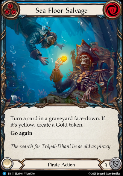 Portside Exchange is going to fill up our Graveyard with allies, draw and give us a gold. It’s another very efficient card like Golden Tipple, while no offense, it gets the job done just as well! Up last is Sea Floor Salvage.