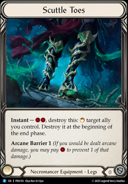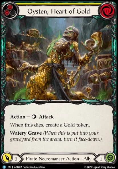 Limpit is our Go Again Ally attack and honestly one of my favorites. Not only is the art one of the best for the allies, she swings for 2 which seems negligible and sometimes people just wont block it because theyve only got 3 blocks in hand, with 0 to cast from Graveyard and only 1 to swing, its just an efficient card. Next is our one-Of Oysten.